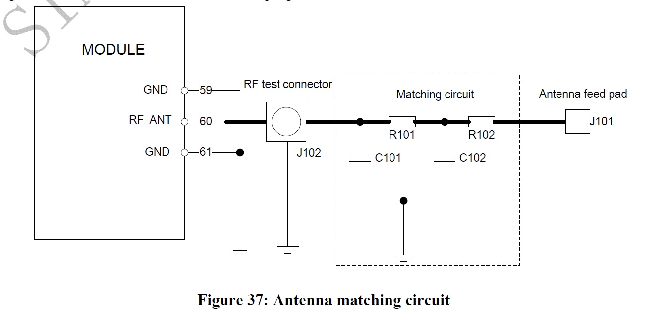 Есть рекомендованная схема согласования, есть значение нужного сопротивления в 50 ом и есть мнение, что при длине проводника от ножки до разъема антенны меньше 2см никаких особых мер по согласованию не требует. На плате ОКО-S длина дорожки около 18мм.